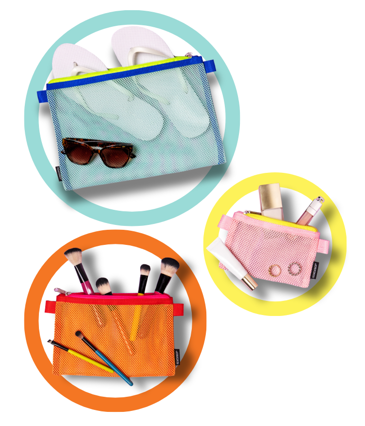 Ob als Kosmetiktäschchen in Bad und Büro oder als Aufbewahrungsort für Schlüssel, Kleingeld & Co. im Urlaub und unterwegs – die leichten, neonfarbenen Netztaschen sind hübsche Ordnungshelfer in allen Lebenslagen.