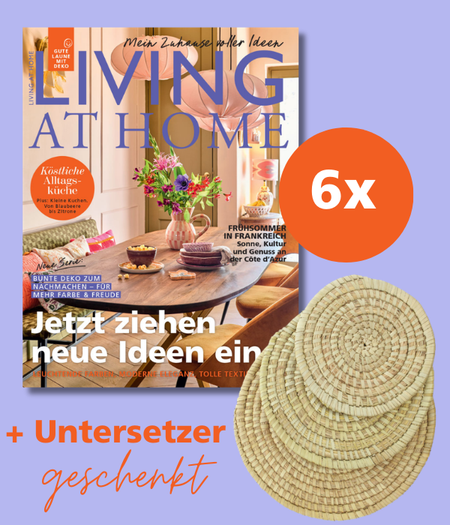 Living at Home ist das monatlich erscheinende Magazin rund ums Wohnen, Einladen und Entdecken. Wir inspirieren mit Ideen und Trends für den wichtigsten Platz im Leben: das Zuhause. Die redaktionellen Bereiche Wohnen, Küche & Gäste, Garten und Entdecken zeigen, wie die eigenen vier Wände zur Wohlfühloase werden.
